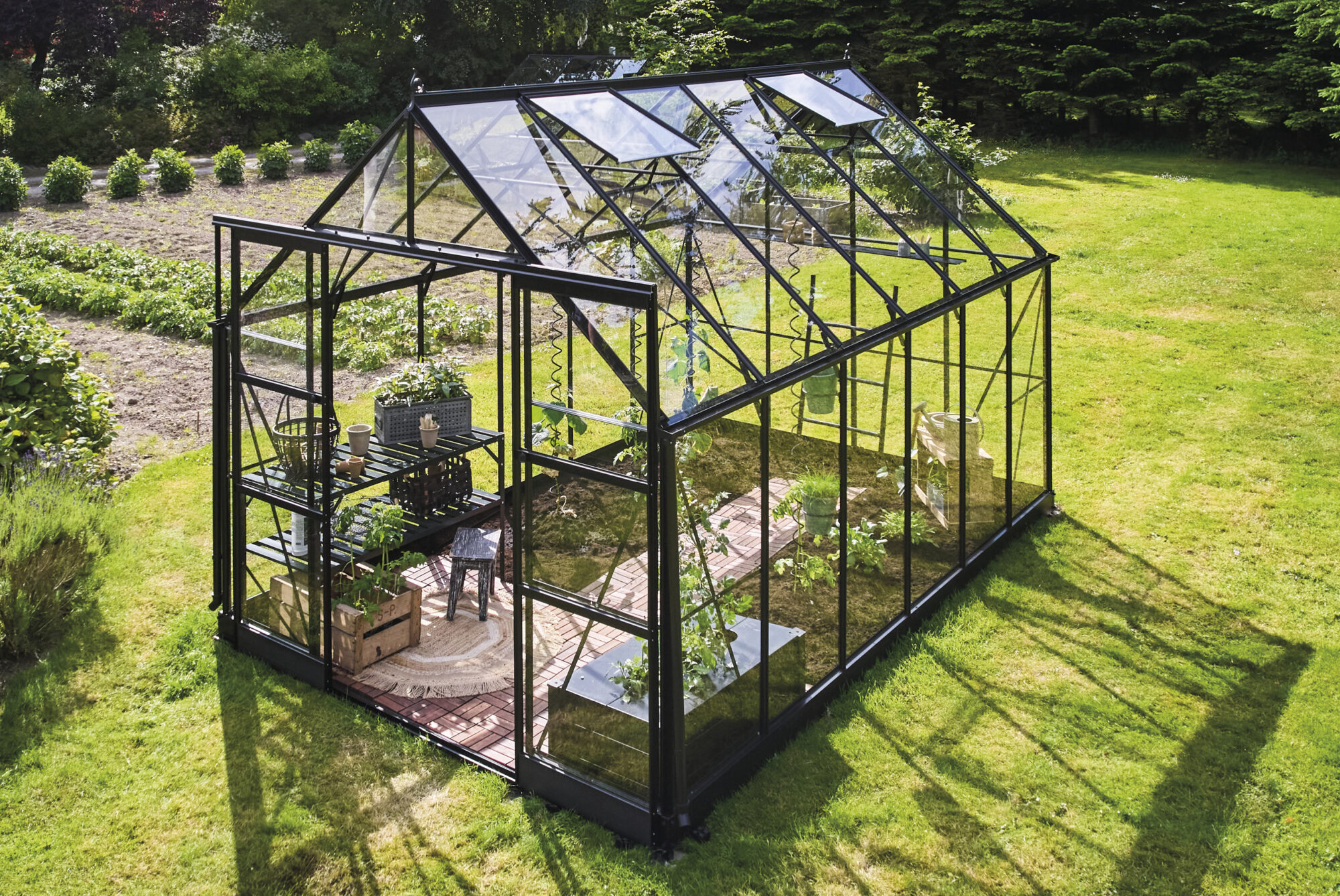 With sizes up to 8×14, ICON 8 offers space for raised beds and cultivation directly in the ground, work space, or a cosy seating nook. The result is a versatile greenhouse that combines functionality with a pleasant atmosphere — and offers more possibilities than you might expect.
